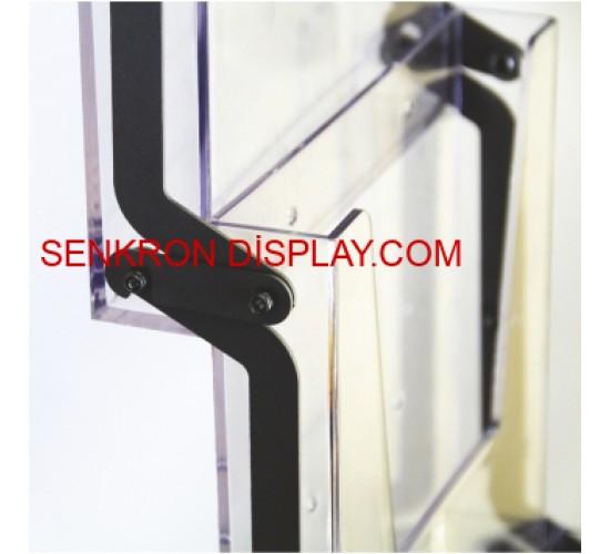 Şeffaf cepli broşürlük ve birbirine geçen raf sistemiyle ürün kaliteli bir dizayna ve sağlamlığa sahiptir. Birbirine geçen raflar sayesinde ürün kolaylıkla demnte edilebilmektedir.