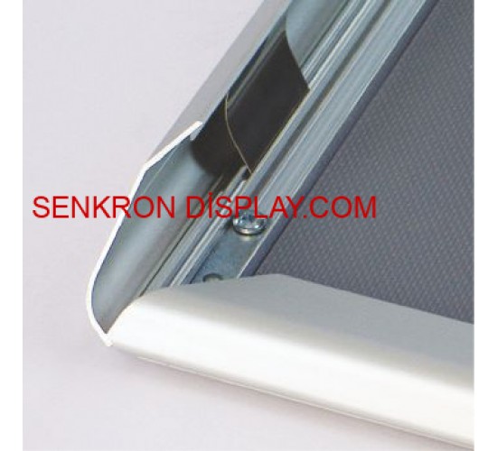 Tik Tak Çerçeve - Güvenlikli Alüminyum Afiş Çerçevesi 45 mm, çerçevenin içindeki görselin alınmasının veya izinsiz değiştirilmesinin önlenmesi amacıyla kullanılır. Çerçevedeki ekstra yaylar ve özel profil dizaynı sayesinde kapaklarının açılması zorlaştırılmış ve güvenli hale getirilmiştir. Güvenlikli Afiş çerçevesi içinde görsel malzemelerinizi sergileyebilir, müşteri ve ziyaretçilerinize mesajınızı iletebilirsiniz.