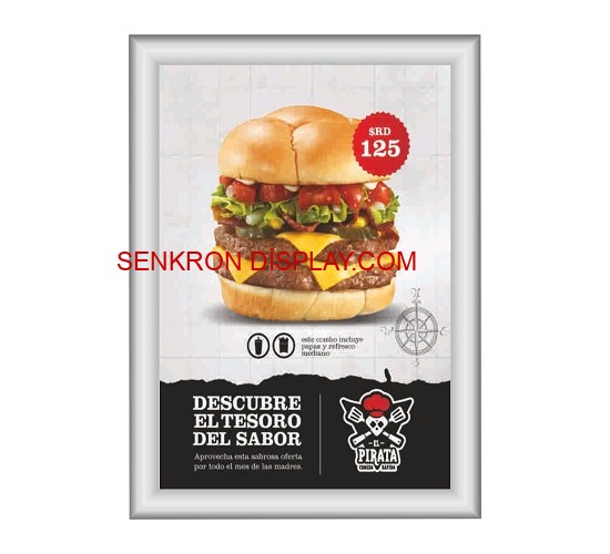 – Standart afiş çerçevesi modelimiz gümüş rengidir. İsteğe bağlı olarak farklı RAL renklerinde üretilebilir.