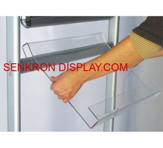İstenildiğinde afş profiliyle uyumlu tek veya çift taraflı şeffaf akrilik broşürlük eklenebilmektedir. Bunun yanı sıra, kolay taşıma için taban altına tekerlek ekleme opsiyonumuz bulunmaktadır. Akrilik raf kalınlıkları 4 mm. dir.